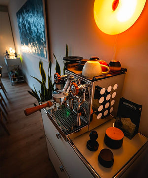 Rocket Appartamento af Rocket Espresso Miloano er en professionel kompakt espressomaskine, der har varmeveksler, E61-gruppe og et integreret dobbelt pre-infusionssystem. Den har et stærkt damptryk til mælkeskumning, en rummelig vandtank og et veldesignet chassis med huller på siden af maskinen med specialindsatse. Rocket Appartamento skiller sig ud fra mængden med sit stilfulde design og ydeevne.