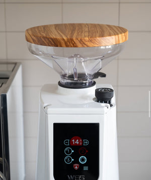 Opgrader din kaffekværn med et stilfuldt kværnbetræk fra Wiedemann Fremstillet. Håndlavet af massivt træ og designet til at passe Eureka Atom 300g beholderen er perfekt – både funktionelt og æstetisk.