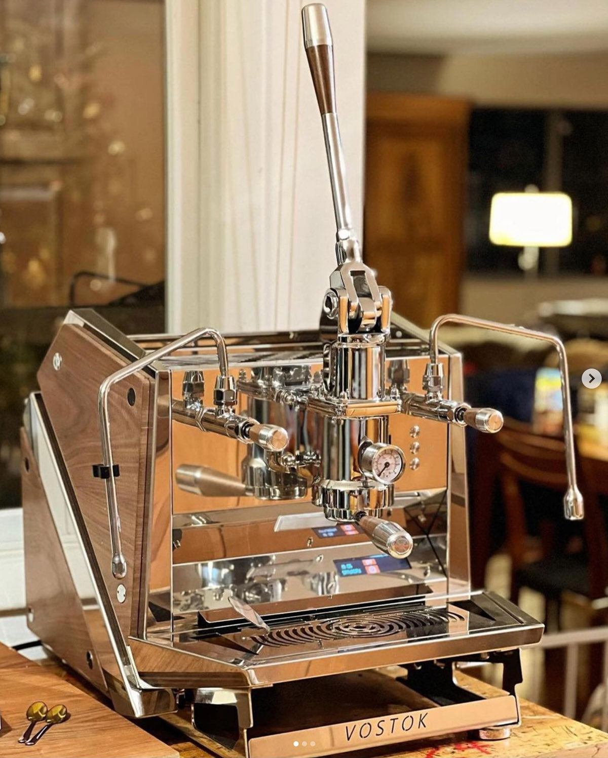 For Vostok-versioner med tilpasset træ: Træsorten på det valgte portafilterhåndtag ændres, og tamperen kommer med en stålfod og et aluminiumhåndtag fra ACS.