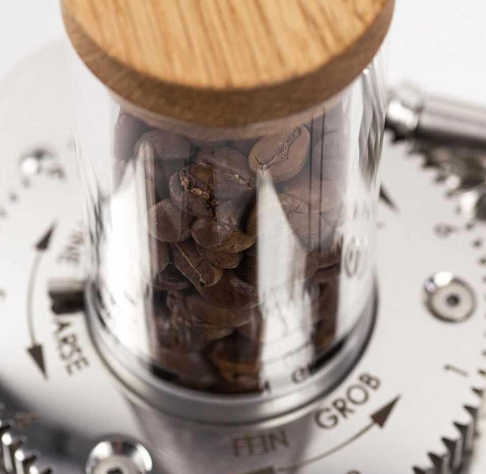 Oplev nymalet kaffe hver dag med vores kompakte bønnebeholder fra Wiedemann manufaktur. Vores produkt er designet til kun at rumme den mængde bønner, der forbruges på en dag, og derfor kaldes den "Day hopper".