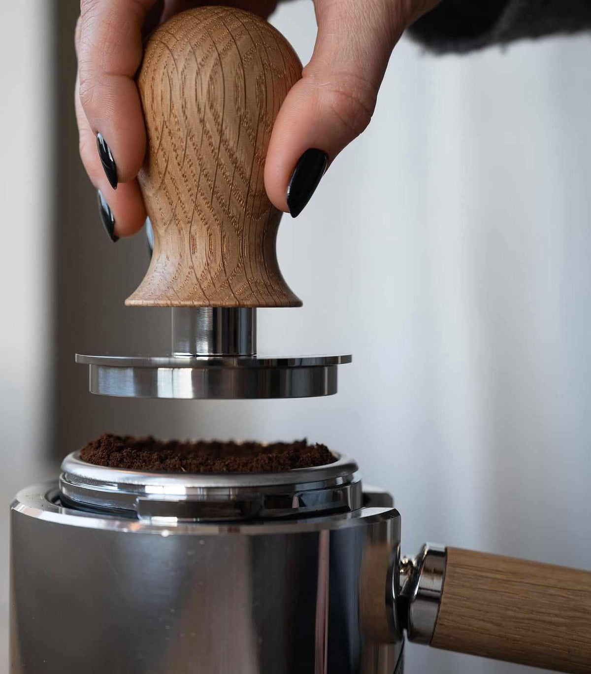 En velpassende tamper er afgørende for at undgå otampede ringe af kaffe, hvilket fører til sidokanalering og dårligt smagende espresso. Vores tamper er kalibreret til perfektion, med tests der viser, at kaffen er fuldstændigt komprimeret ved 15 lbs - mere tryk er ikke nødvendigt. Dette reducerer risikoen for muskel- og ledstræk og gentagne stressskader, samtidig med at det garanterer en jævn og konsekvent tamping hver gang.