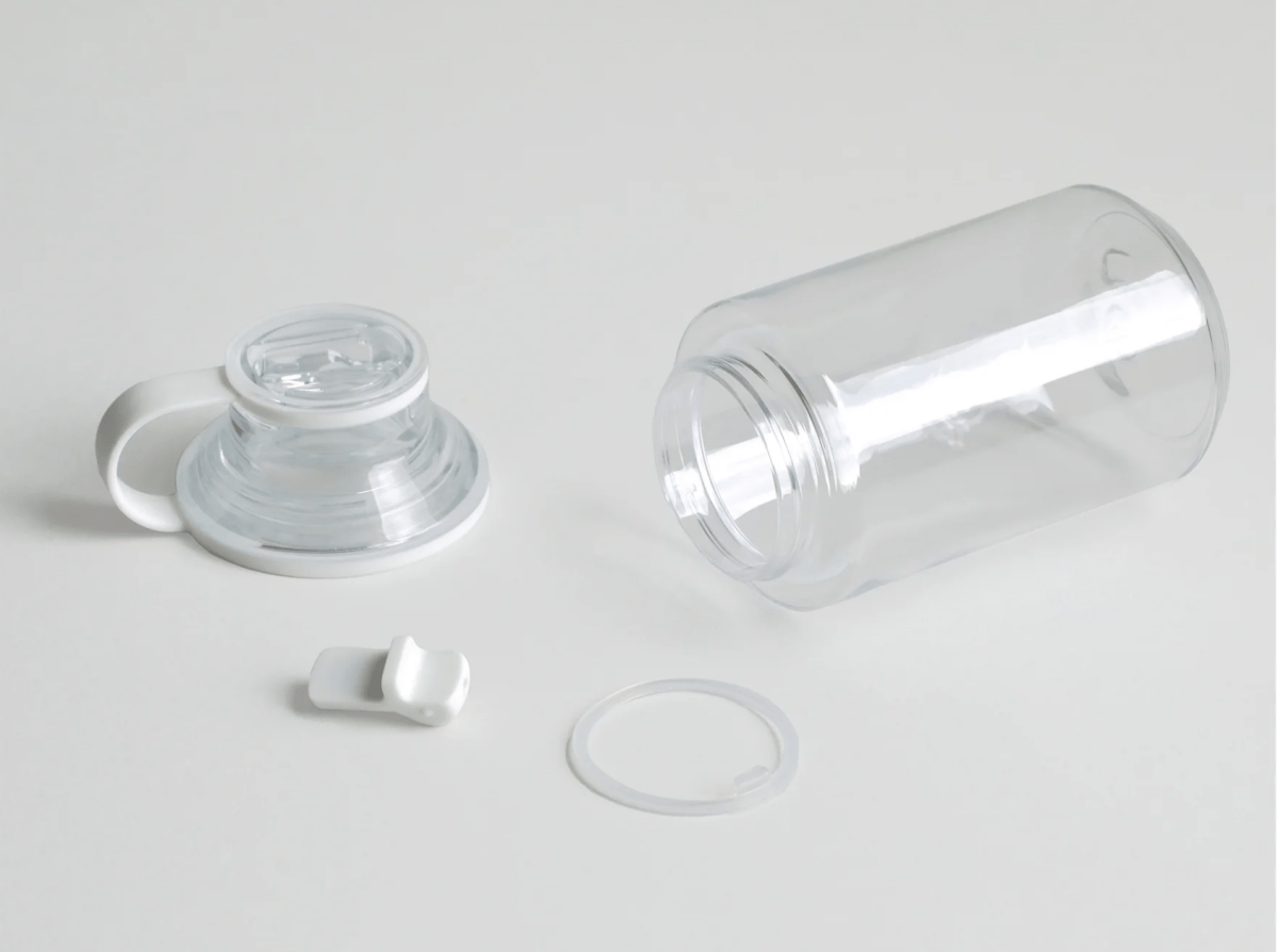 - Flaske og låg lavet af copolyester, der kan modstå op til 80°C