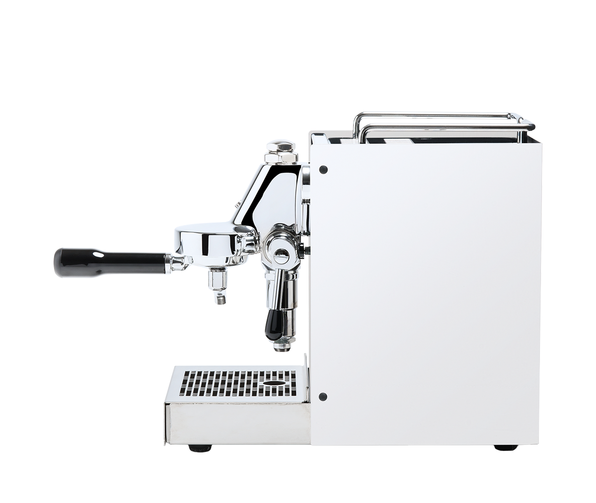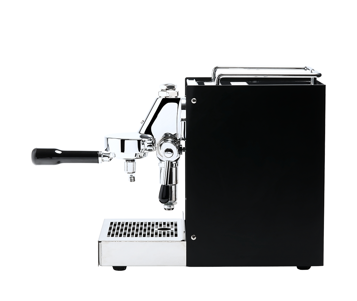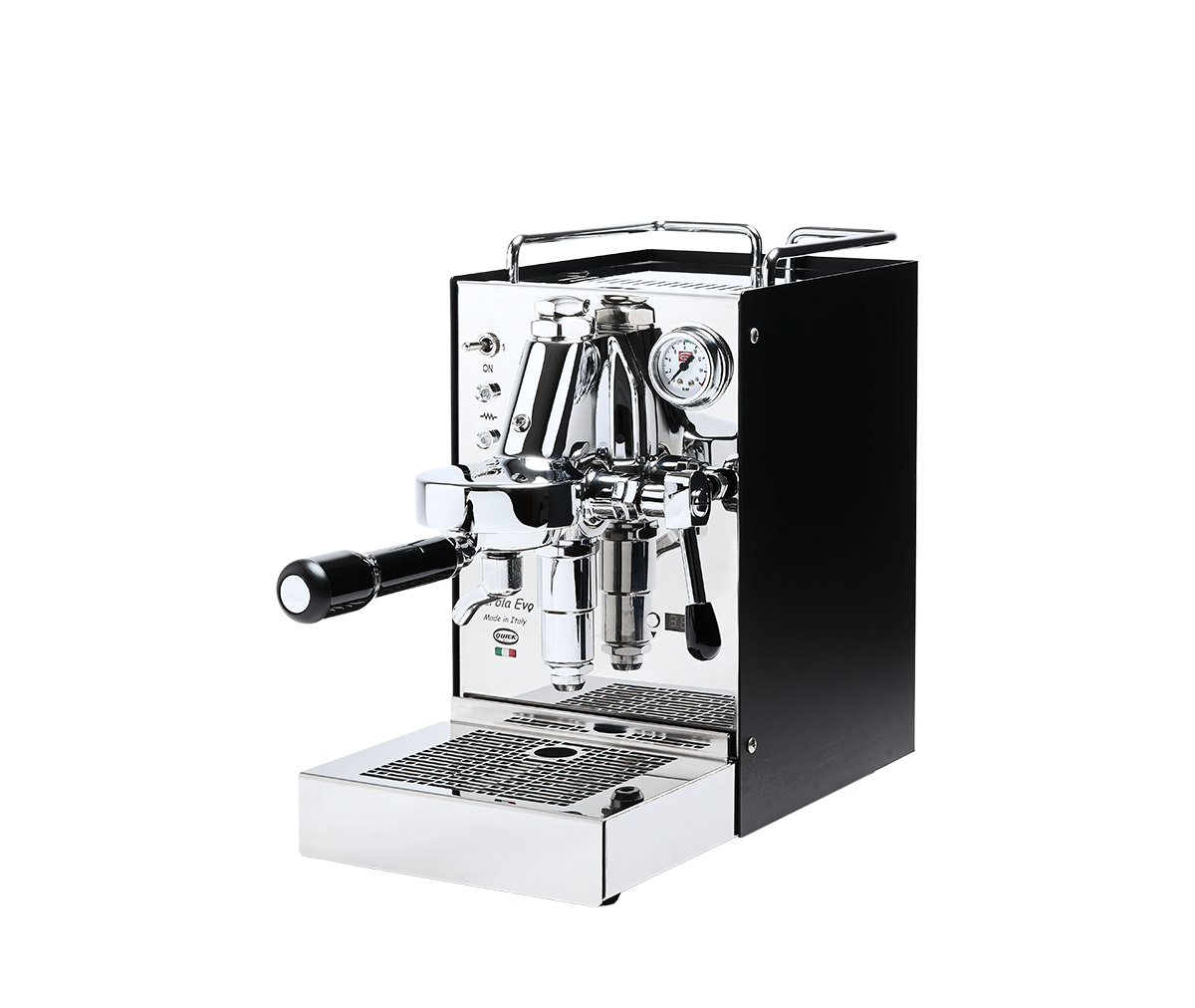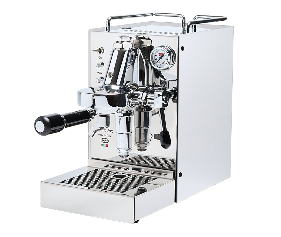 Materiale: Fuld rustfrit stål; sidepaneler i stål eller mat sort; Quick Mill bryggruppe med rustfri mushroom