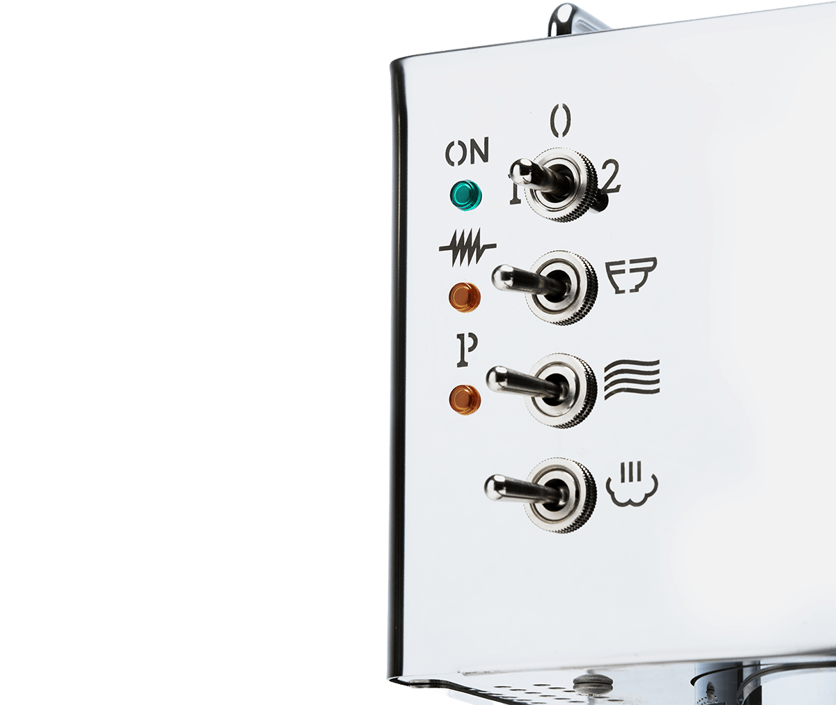 Pippa styres med klassiske spakregulatorer, tydelige indikatorlamper og et separat trykmålerhus. Enkelt, driftssikkert og bygget til lang levetid.