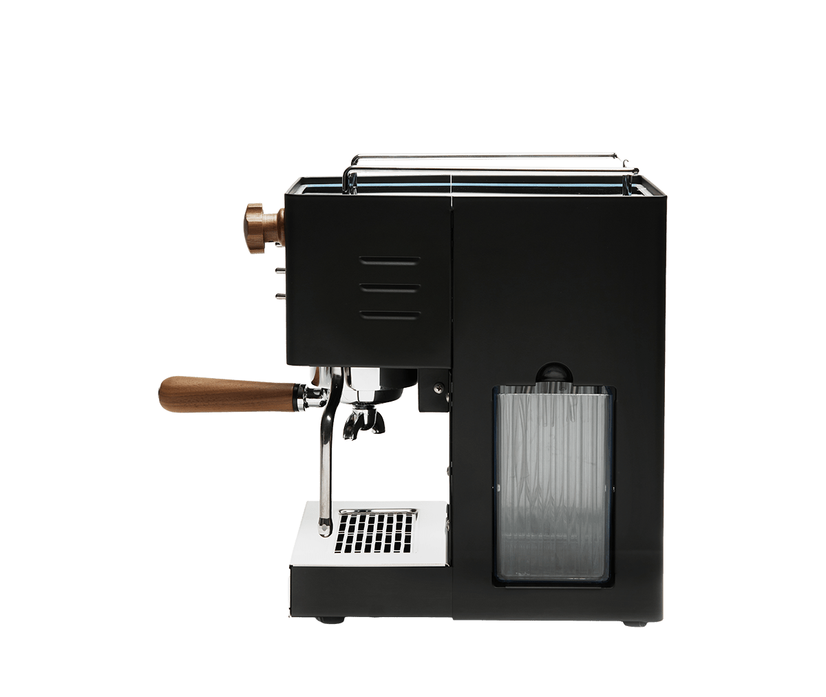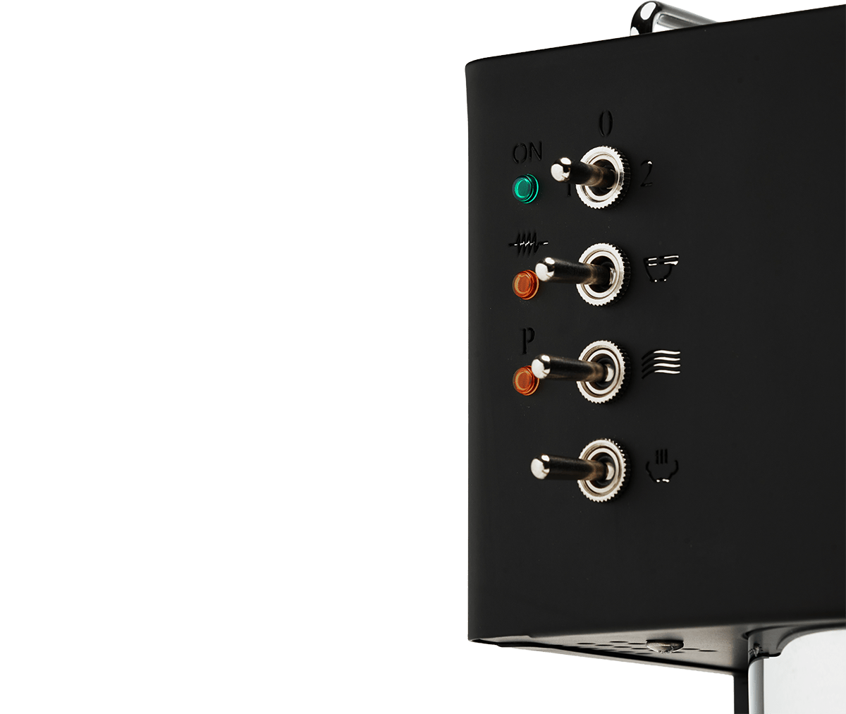 Chassis og ydre komponenter er fremstillet i rustfrit stål. Maskinen fås også i mat sort version med damphåndtag og portafilter i træ—perfekt til dig, der kan lide moderne design.