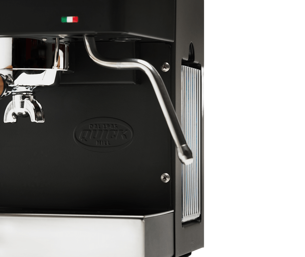 Quick Mills egen vibrationspumpe reducerer støjniveauet med ca. 30 %, hvilket giver en roligere bryggeoplevelse uden at gå på kompromis med tryk eller kvalitet.