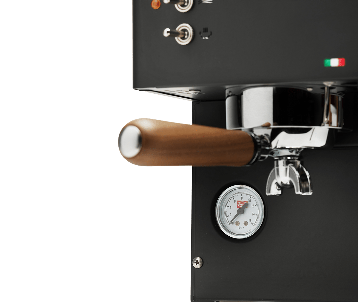 Den analoge manometer (0–16 bar) lader dig se brygtrykket i realtid. Det gør det lettere at justere formalingsgrad og dosering for at opnå optimalt tryk omkring 9 bar—nøglen til en balanceret espresso.
