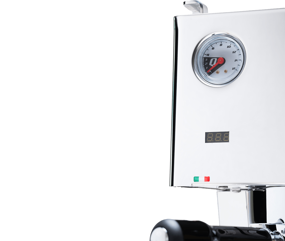 Med trykmålere for både pumpe- og kedeltryk kan du se præcis, hvordan maskinen arbejder, og hvordan dine indstillinger påvirker ekstraktionen.
