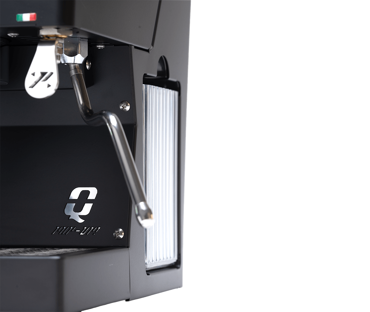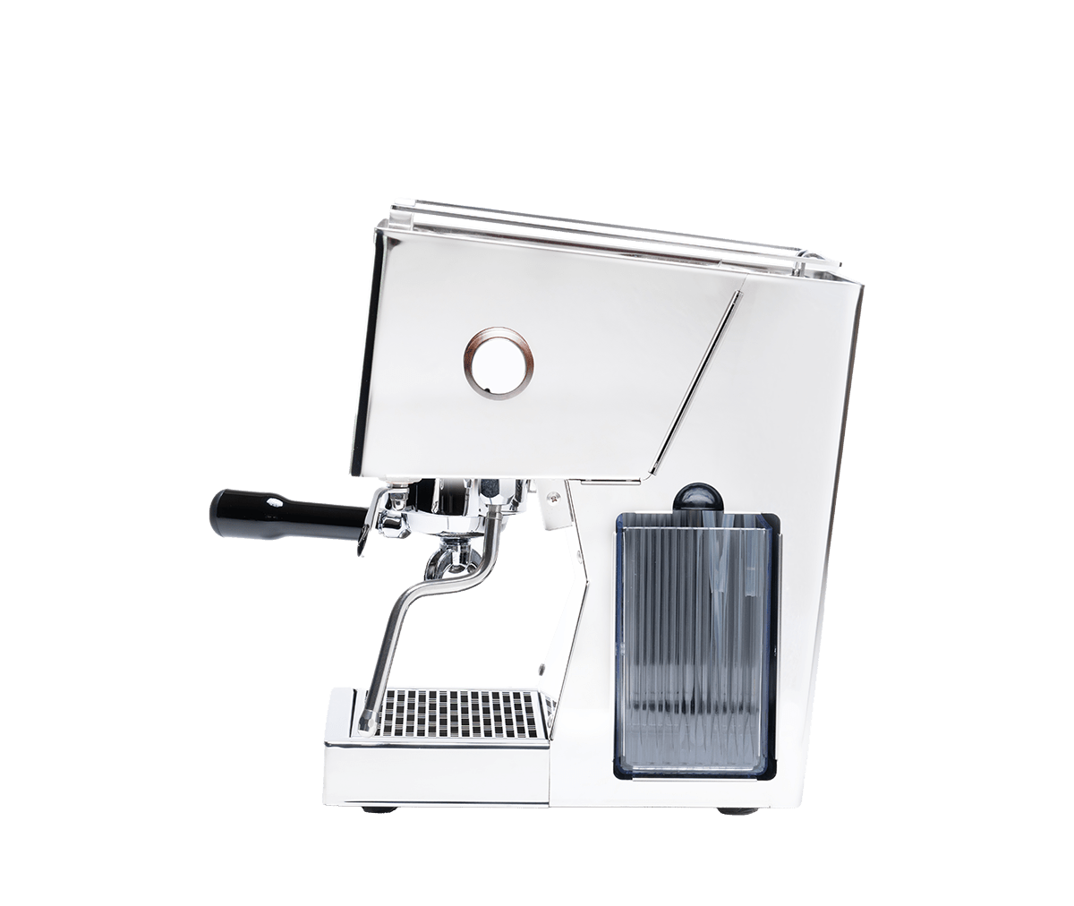 Quick Mills egenudviklede vibrationspumpe reducerer støjniveauet med cirka 30 %, hvilket gør bryggeoplevelsen roligere uden at gå på kompromis med tryk og kvalitet.