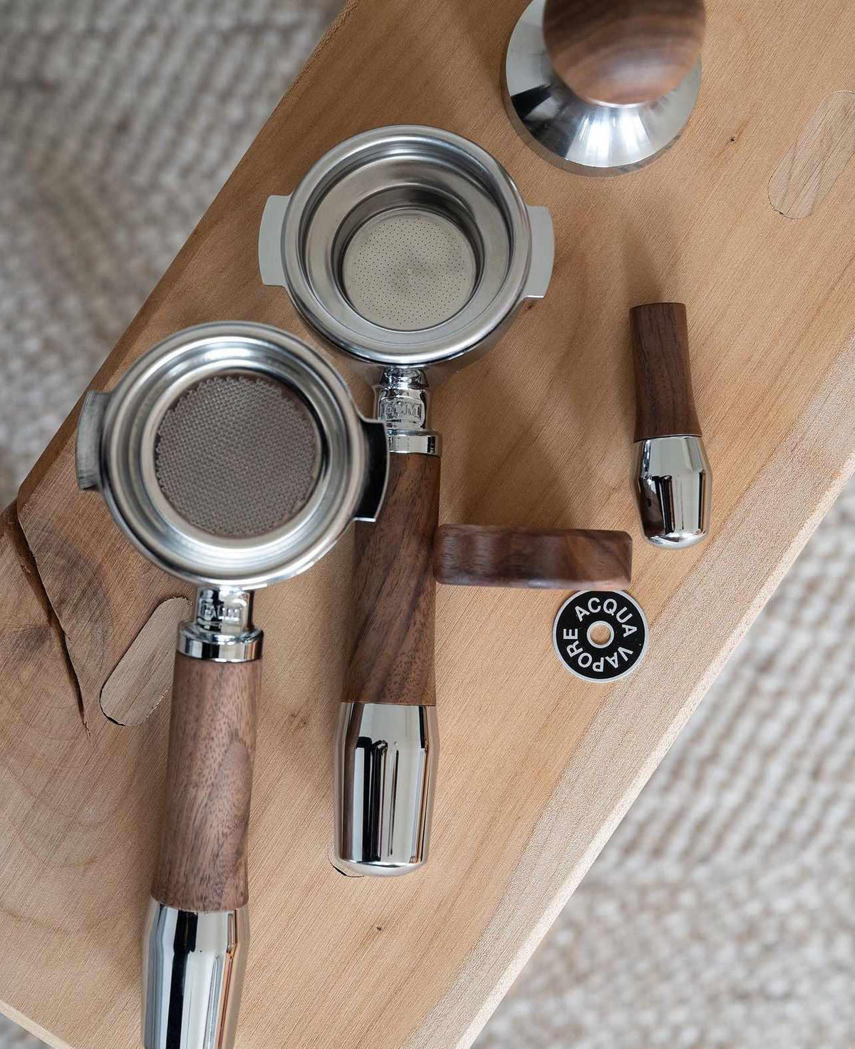 Vores håndtag med designet "Elegant" leveres med originale portafilterhoveder fra ECM, mens alle andre portafilter har portafilterhoveder i rustfrit stål. Hver dag giver vores håndtag en taktil oplevelse, der er enestående. Vores træ behandles i hånden med organisk hårdolie, så den naturlige følelse i træet bevares.